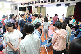 教师们通过深呼吸与随机配对,两两组成“镜子”与“照镜人”。从静止凝视到动作模仿,双方力求动作一致,模糊角色界限。短短几分钟的专注同步,不仅活跃了气氛,更让教师们深刻体会到非言语联结的力量,正如分享所言:“学生亦是我们的镜子,提醒我们保持觉知。”
